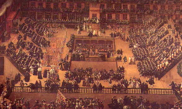 " (...) Cordões de tropa impediam que o povo invadisse, na praça, o recinto reservado ao Auto.